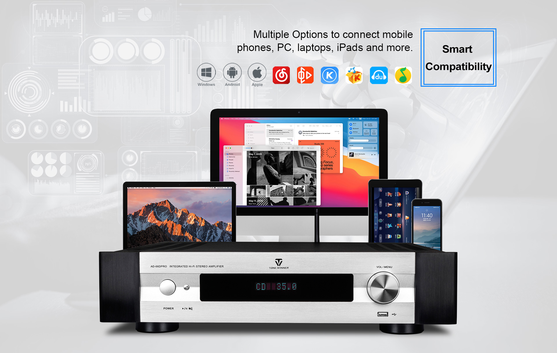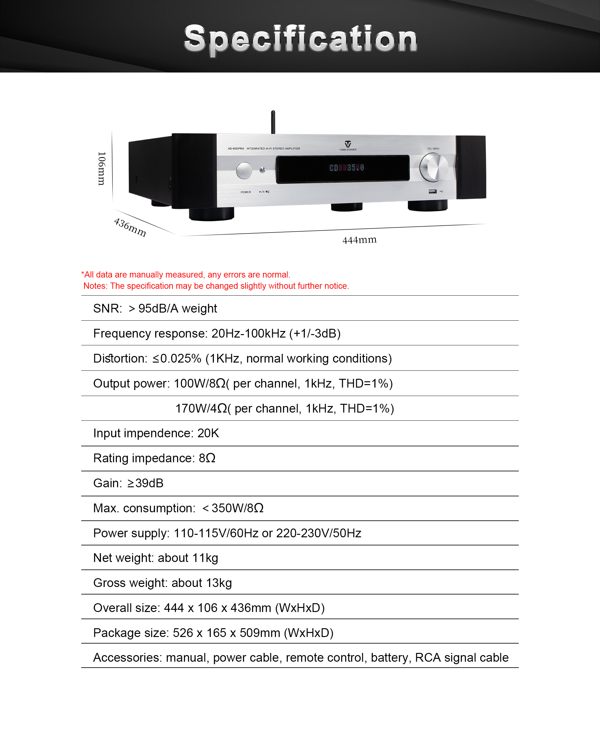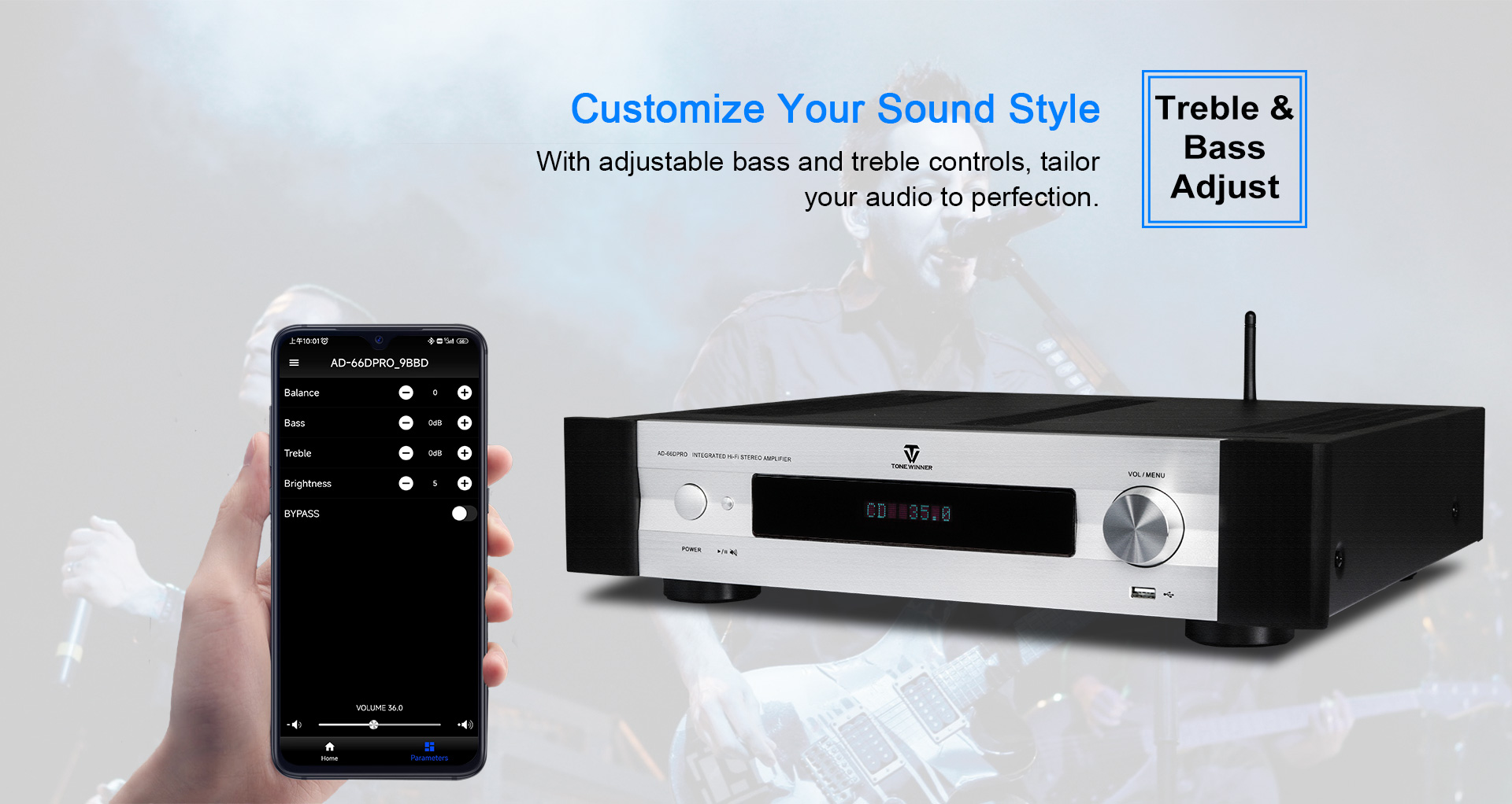 AD-66DPRO — это модернизированная версия AD-66D. Она оснащена новым фоно-интерфейсом MM/MC и новым мобильным приложением. AD-66DPRO сохраняет самые популярные преимущества и улучшается за счет новых функций, что делает её настоятельно рекомендуемым усилителем начального уровня для Hi-Fi-систем.