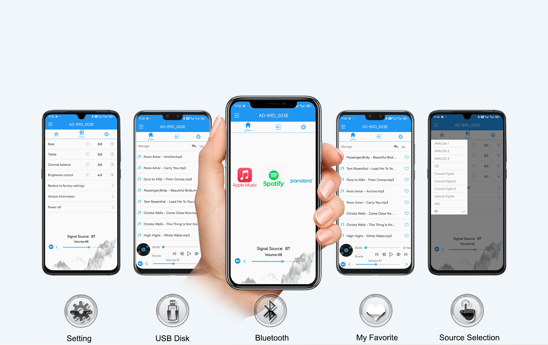 Удобное управление воспроизведением: USB-диск, TF-карта, Bluetooth, приложение для мобильного телефона