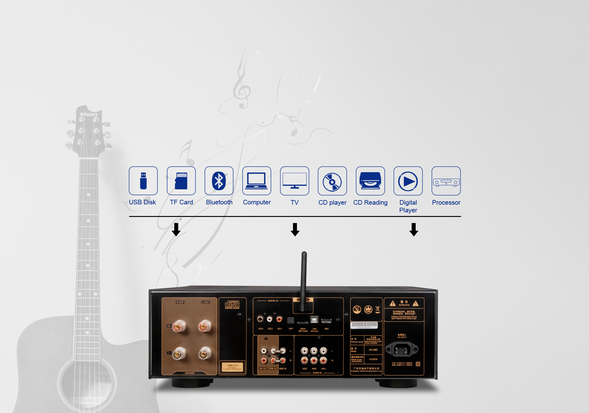 CD-плеер, цифровой плеер, декодер, усилитель мощности — четыре в одном! Функциональность, производительность, мощность и качество звука — всё в одном! Управление простое и удобное, не требует сложной настройки.
