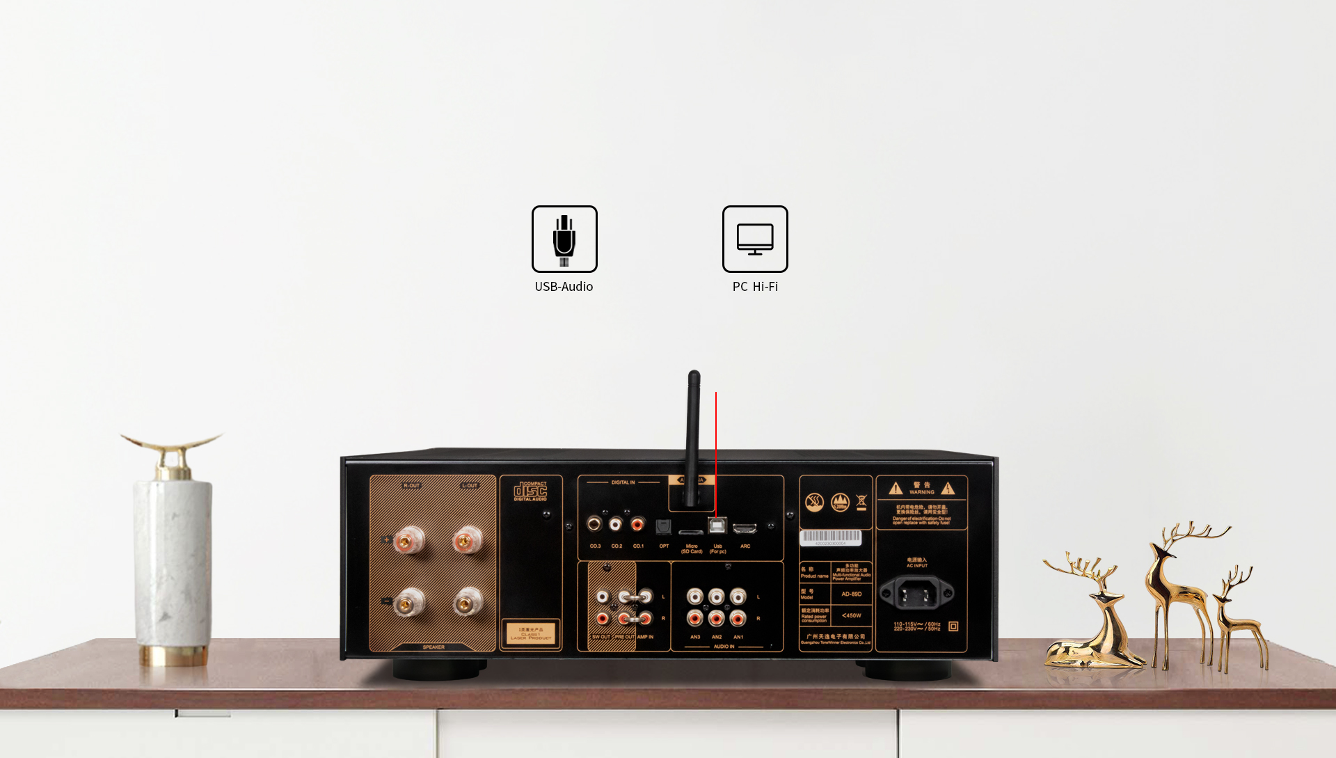 Поддерживает порт USB-Audio для ПК с частотой дискретизации PCM 48 кГц/24 бит для достижения настоящего эффекта ПК Hi-Fi звука и удовлетворения потребностей аудиофилов.
