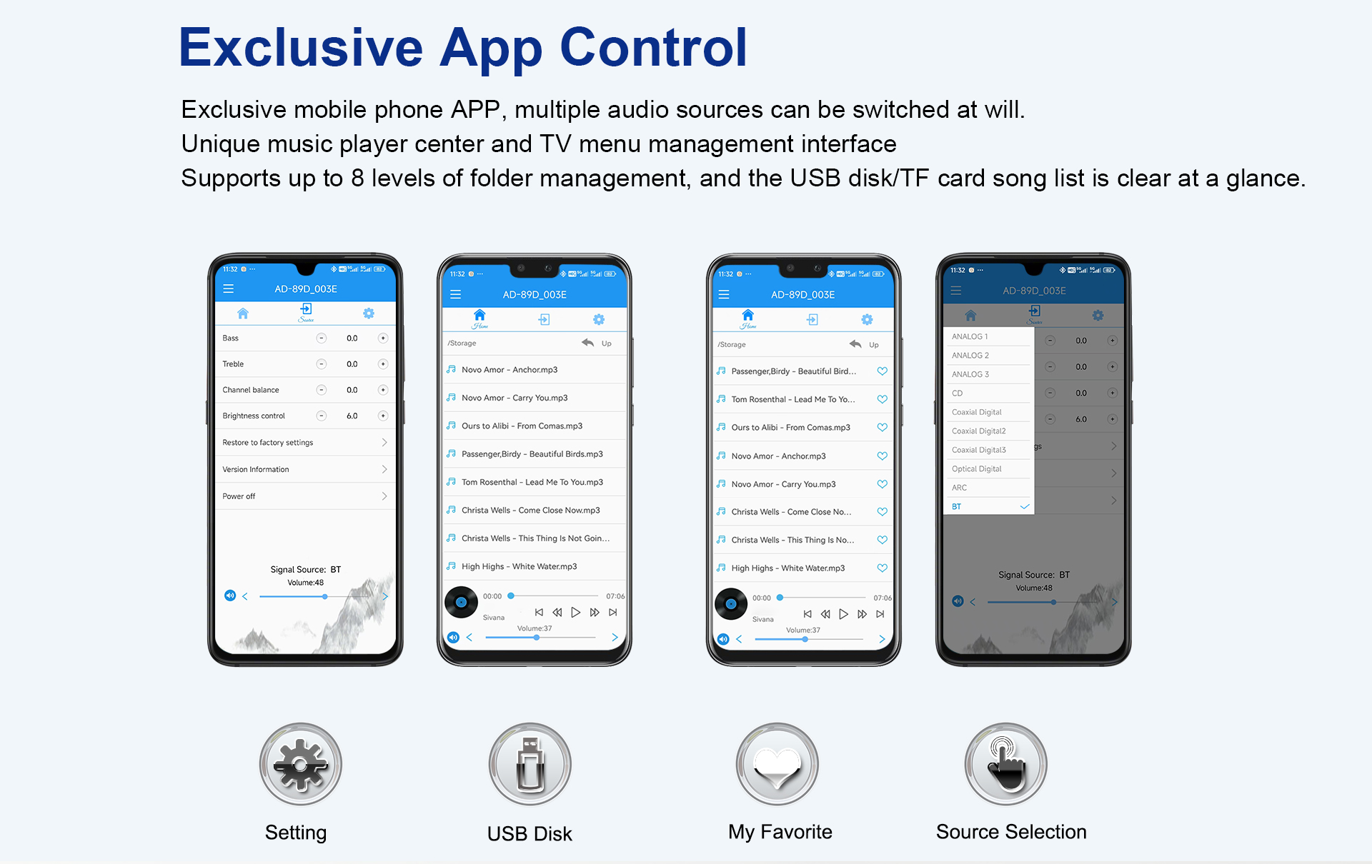 Он поддерживает USB-накопители объемом 128 ГБ и карты памяти TF, а также форматы APE, FLAC, WAV, MP3, WMA.
