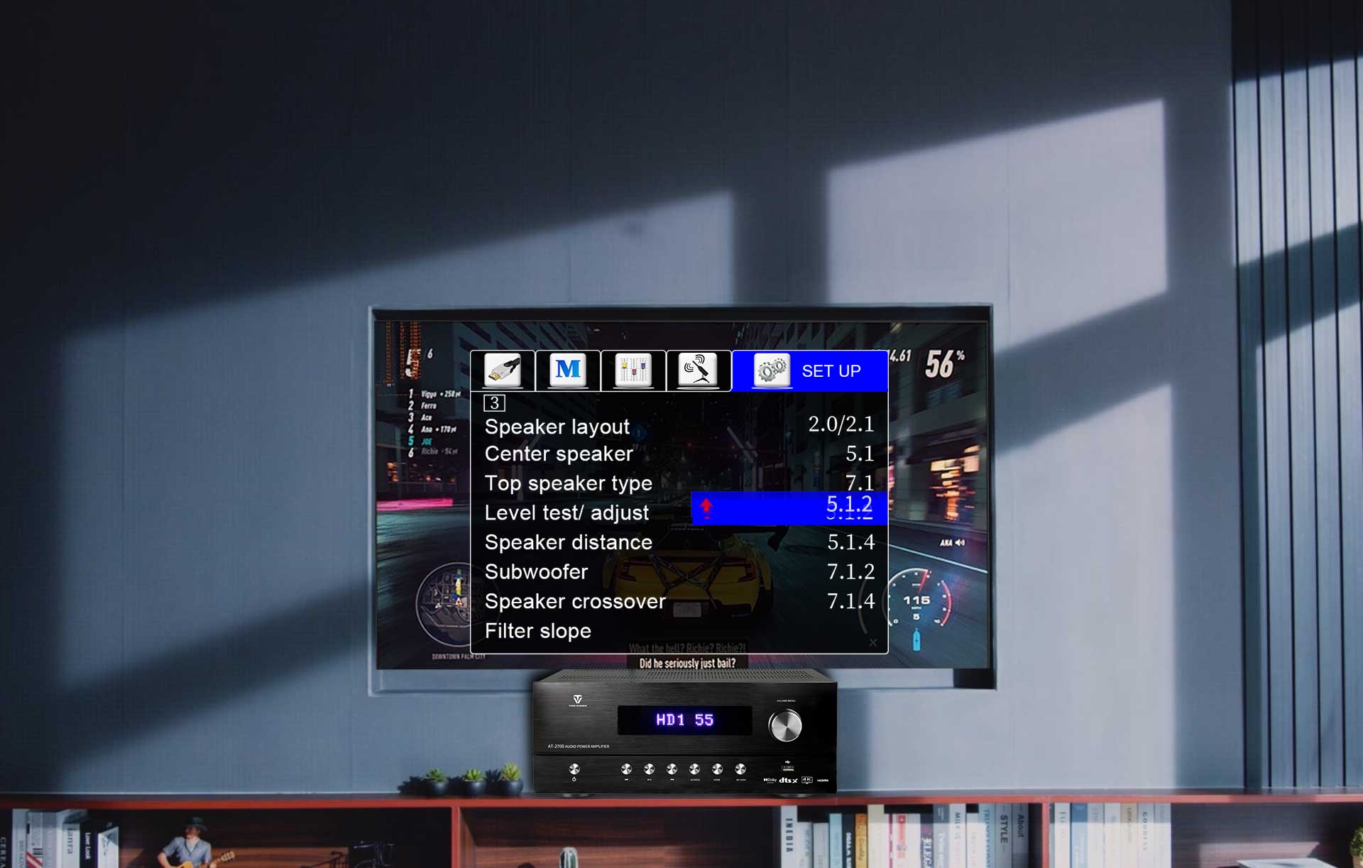 Простое меню для удобного управления и настройки. Вы можете регулировать параметры для улучшения качества звука на экране во время работы AV-ресивера.