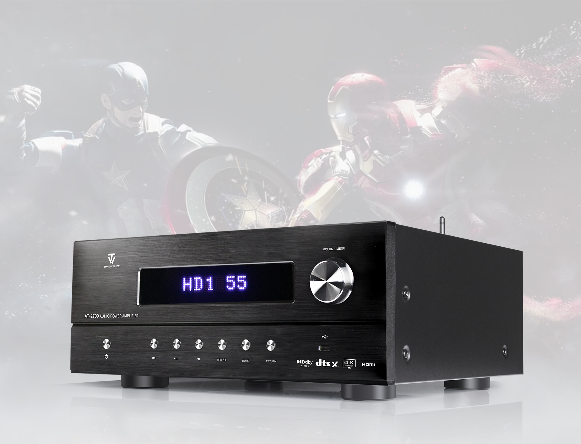 AT-2700 — это интегрированный AV-ресивер с усилителем, поддерживающий Dolby Atmos, DTS:X, 4K, Dolby Vision, HDR и др. Он также поддерживает декодирование 5.1.2, Bluetooth, HDMI 4 входа 2 выхода, управление CEC, экранное меню (OSD), RS232, управление через мобильное приложение и т.д. Компания Tonewinner, входящая в топ-10 ведущих брендов аудиотехники в Китае, имеет более чем 30-летний опыт проектирования и производства акустической продукции. Как оригинальный поставщик, Tonewinner всегда рад сотрудничеству с дистрибьюторами, партнерами и клиентами по всему миру.