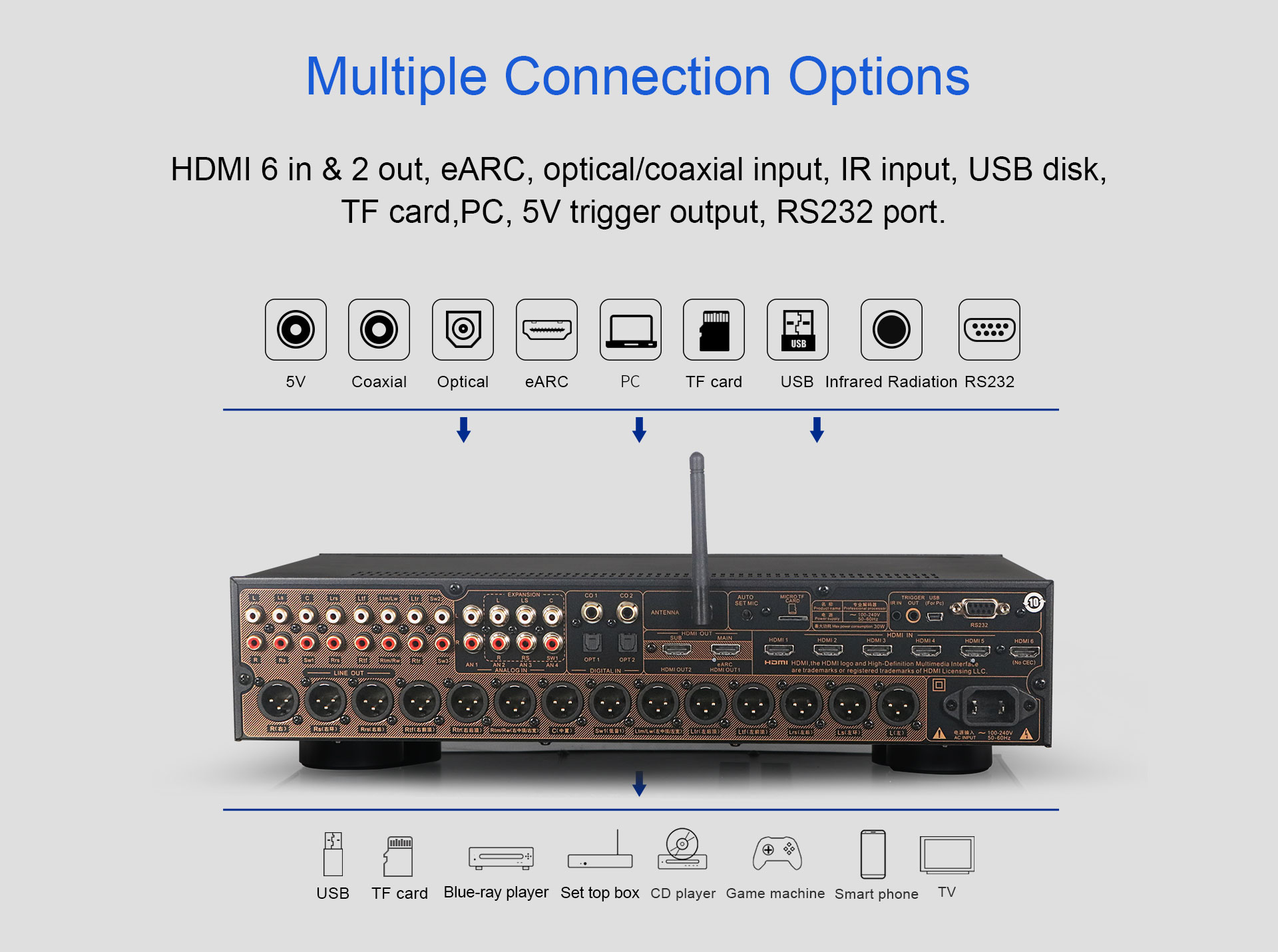 АТ-300 — это 16-канальный AV-декодер для домашнего кинотеатра . Этот профессиональный процессор Поддерживает разрешение 4K и сертифицировано по стандартам Dolby Atmos, DTS:X и HDMI 2.0. многофункциональный декодер Этот предусилитель можно использовать в домах, кинотеатрах и театрах для создания эффекта объемного 3D-звучания Hi-Fi.