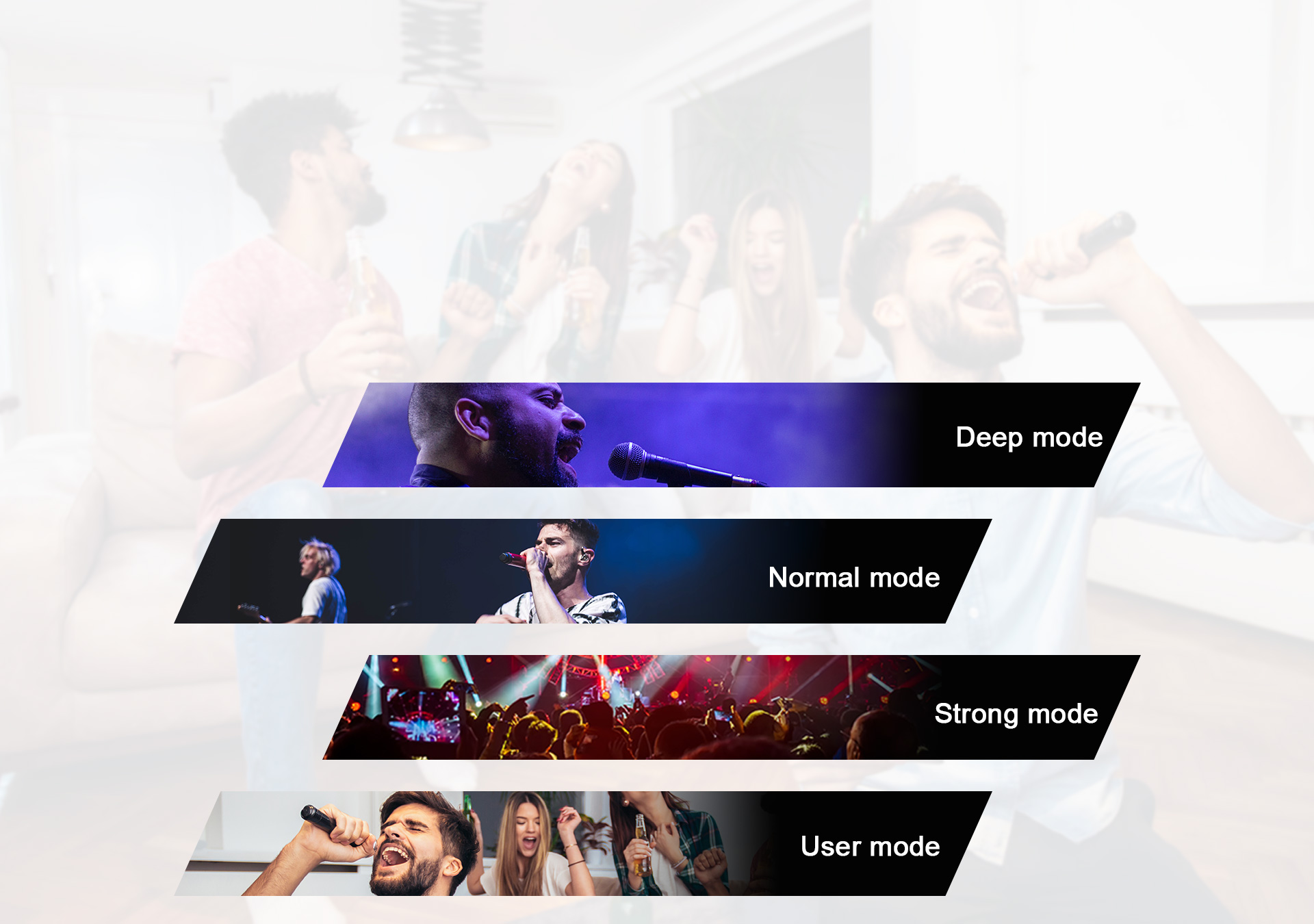 Сильный режим: относительно более высокие параметры для высоких и низких частот для более выраженных ощущений.