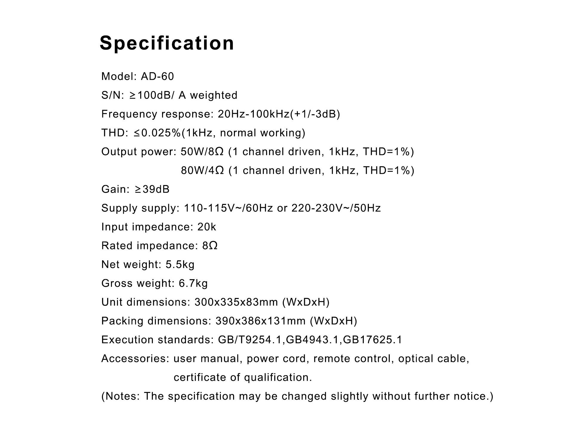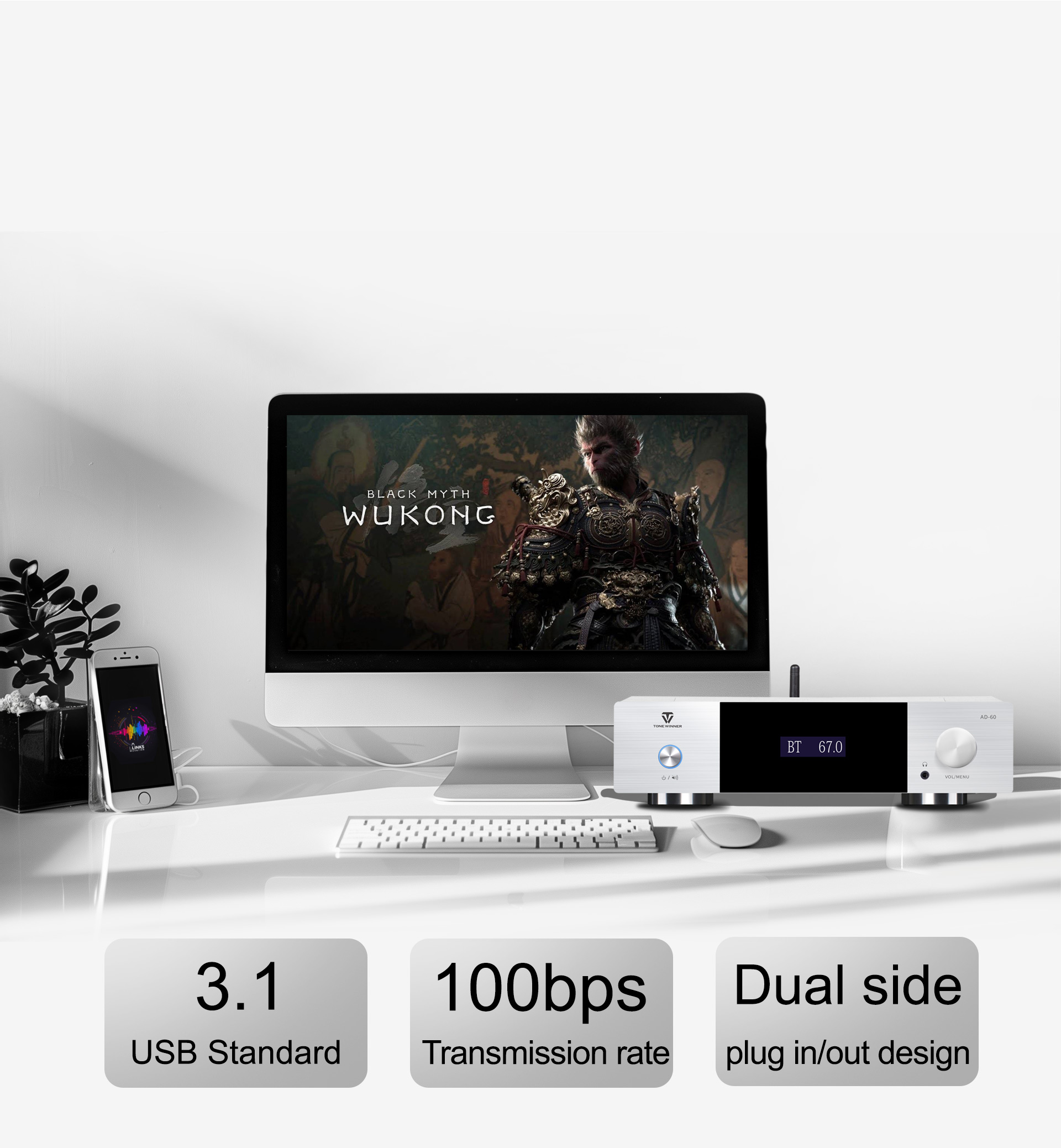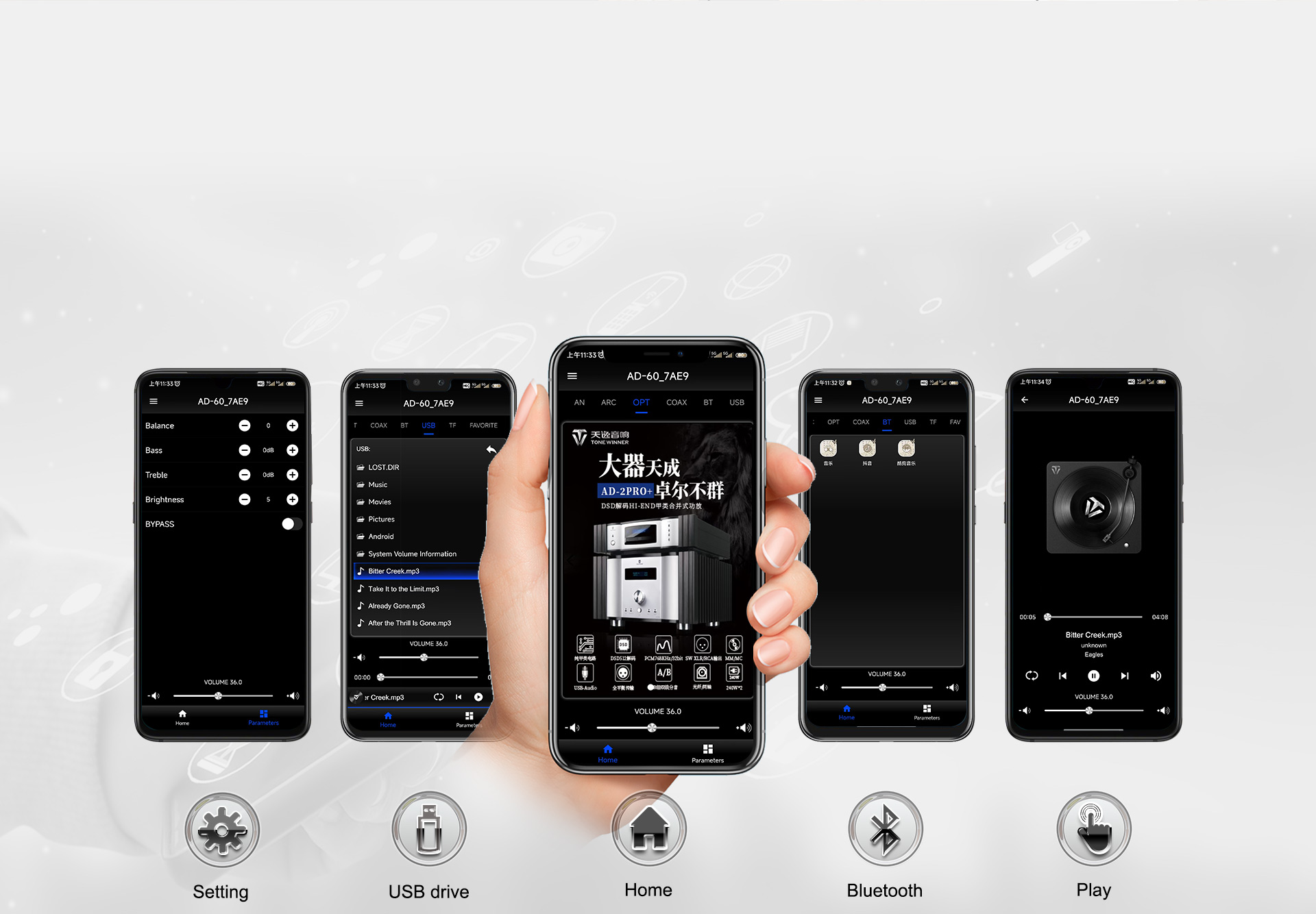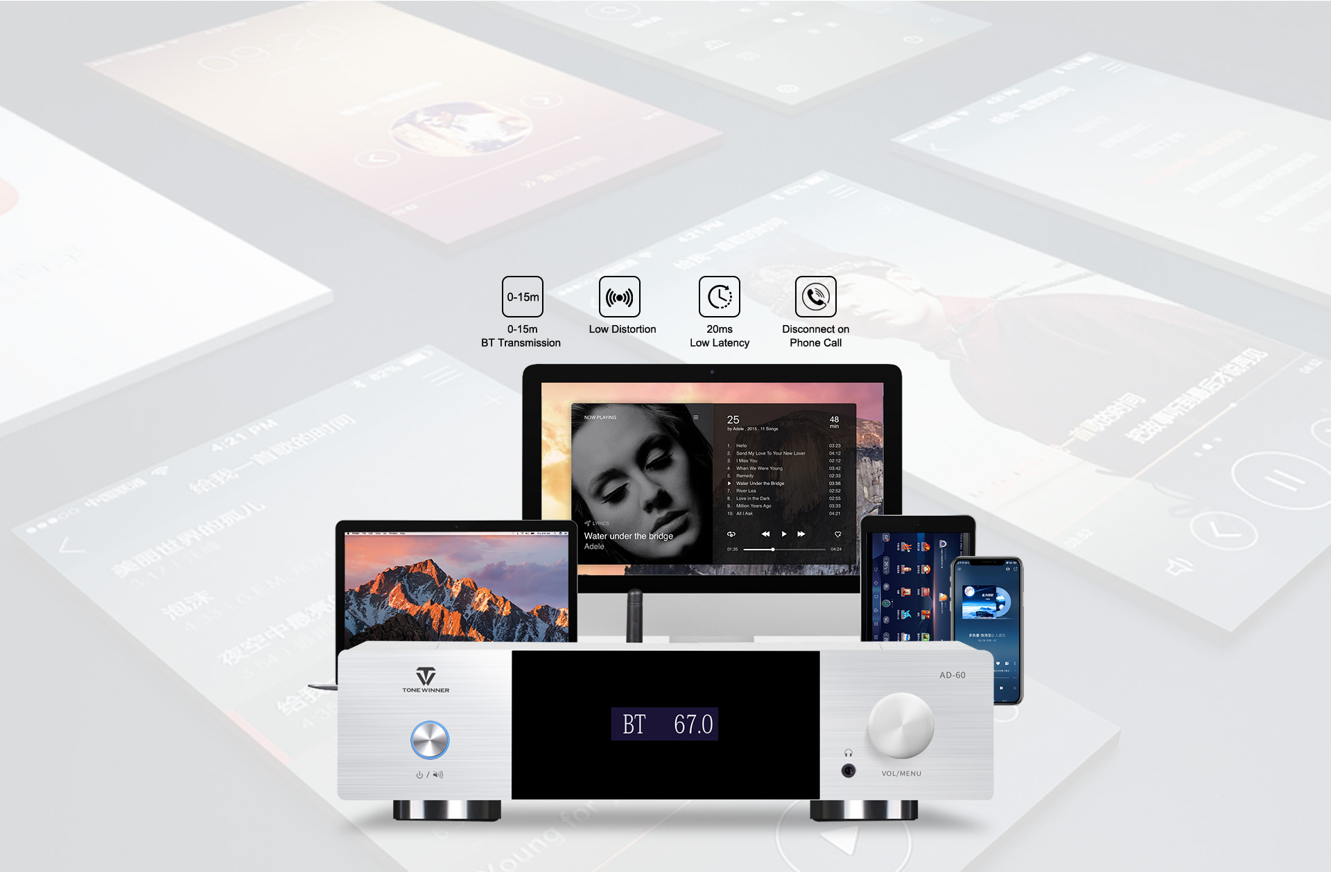 AD-60 — это интегрированный усилитель мощности класса AB для системы 2.1. Он сочетает в себе функции декодирования предварительного усилителя, усилителя мощности, цифрового воспроизведения и усилителя для наушников, поддерживает Bluetooth 5.0, USB-накопители, карты памяти TF, управление через приложение на смартфоне и цифровые входы, включая оптический, коаксиальный и PC USB-Audio. Он изначально разработан и изготовлен из качественных материалов и компонентов, обеспечивающих аналитическое звучание. Это модный и экономичный усилитель мощности для ваших высококачественных аудиоразвлечений.