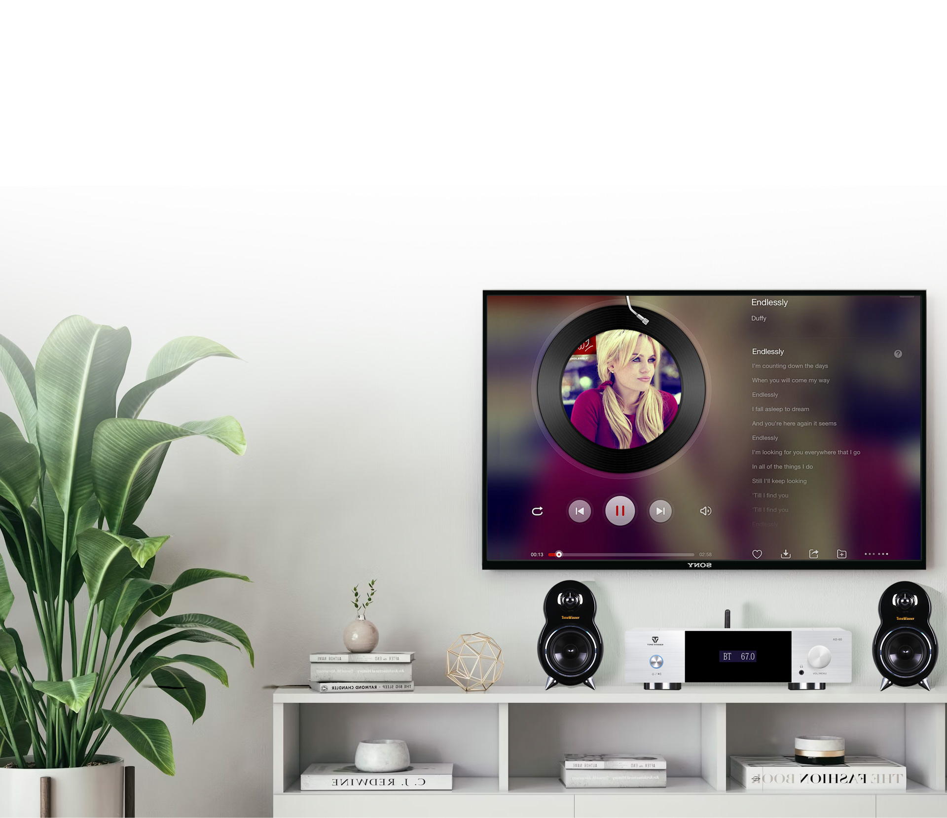 Одно кабельное подключение превращает его в упрощенную телевизионную звуковую систему, объединяющую звук и изображение.