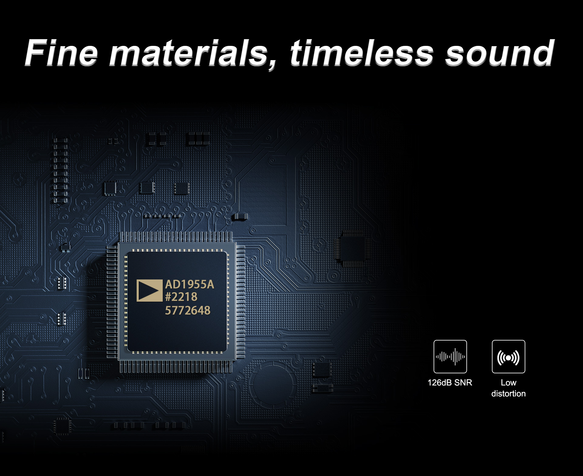 У Используя чип ЦАП AD-1955, разработанный аудиофилами, он обеспечивает впечатляющий динамический диапазон и отношение сигнал/шум 126 дБ при общем коэффициенте гармонических искажений всего -110 дБ. Кроме того, он совместим со 108 продуктами.