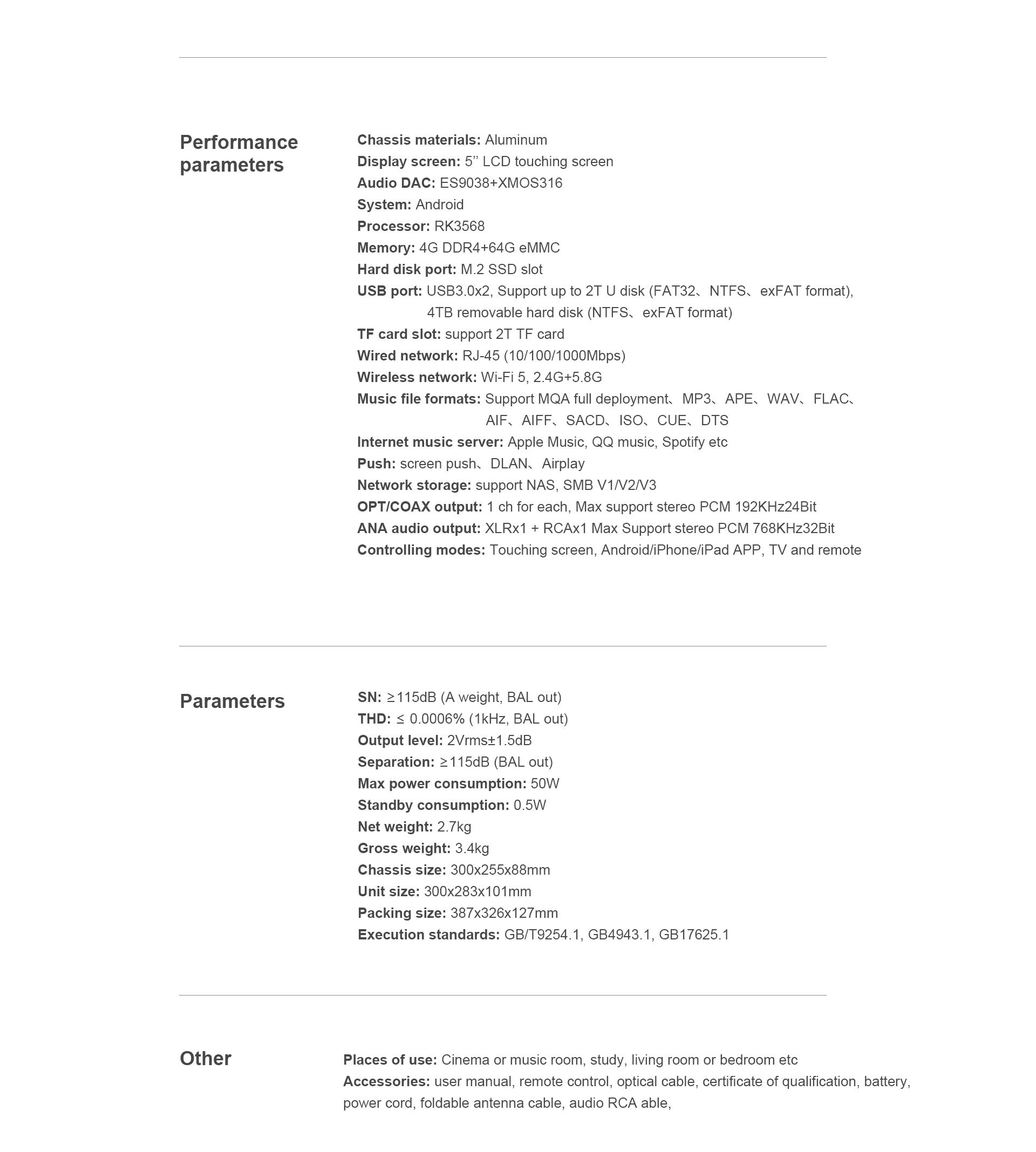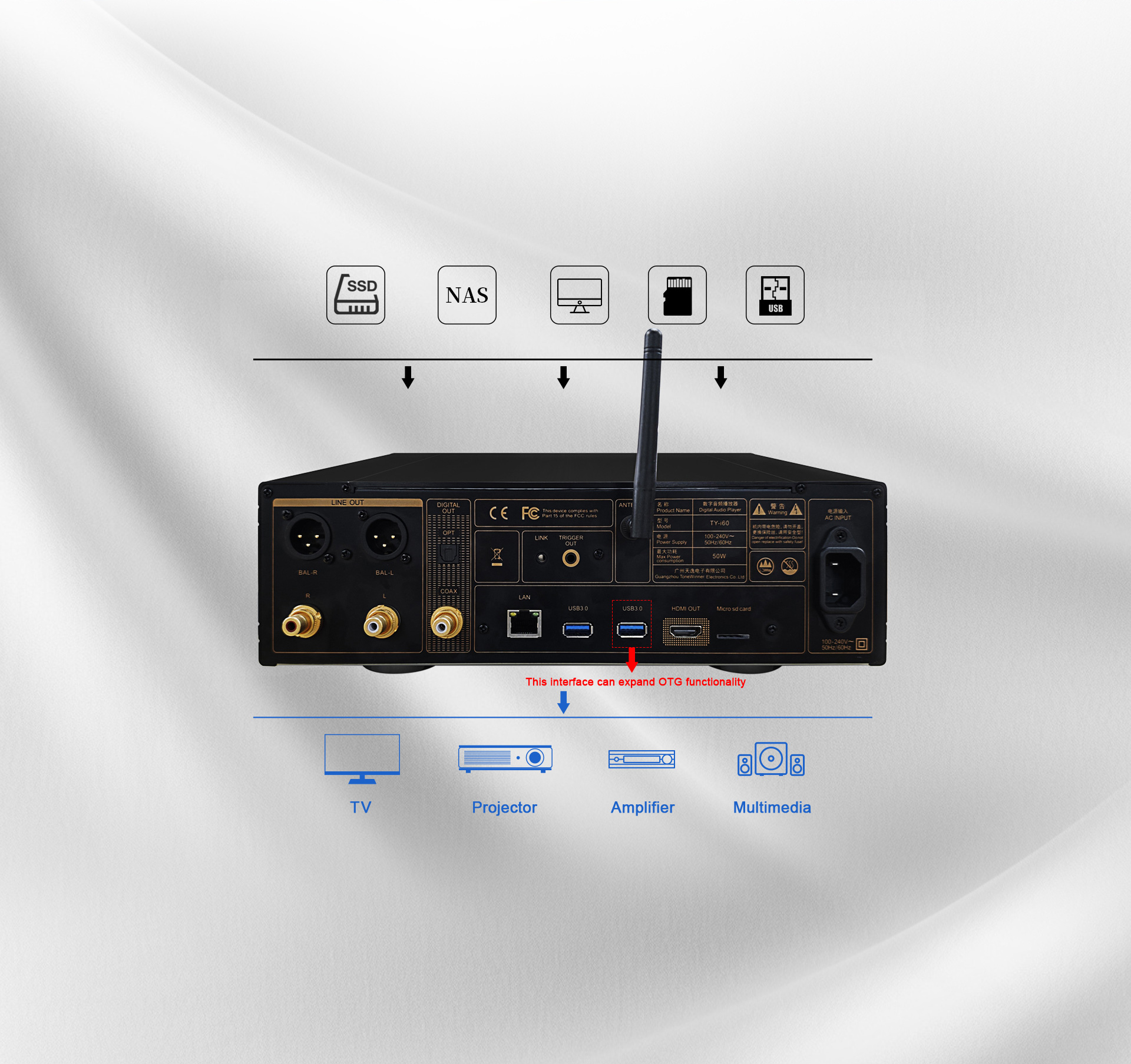 ≥110dBЦифровой DSD-плеер TY-i60