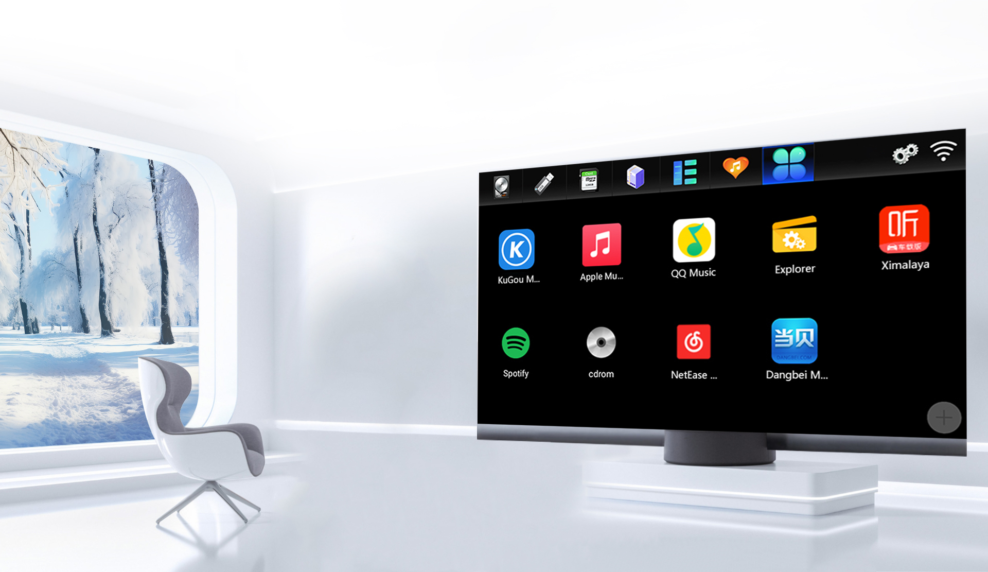 Уникальный центр воспроизведения музыки и интерфейс управления меню телевизора,