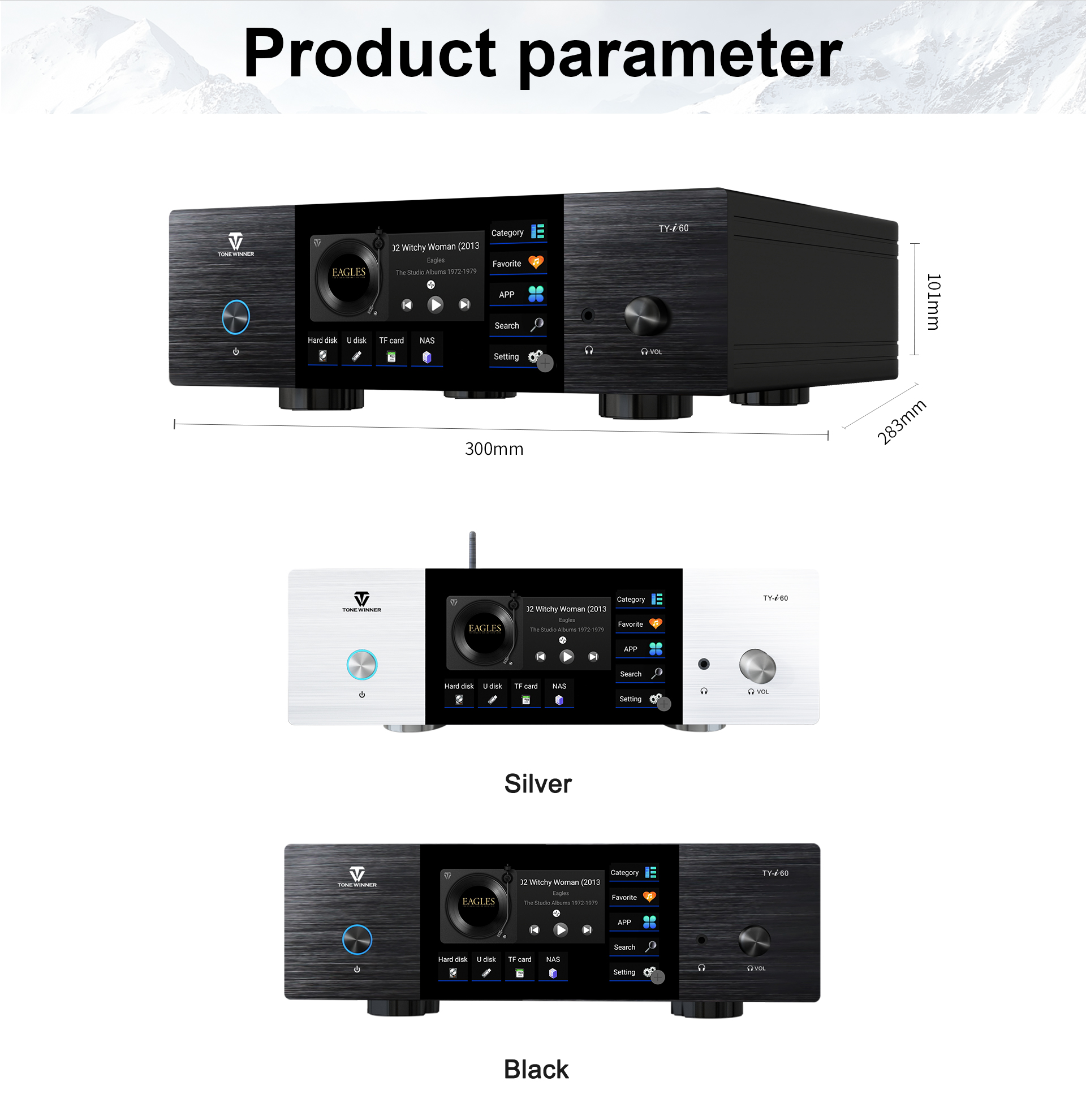 TY-i60 — это цифровой музыкальный проигрыватель Hi-End-класса, тщательно разработанный компанией Tonewinner с использованием более чем 30-летнего опыта и технических инноваций в области разработки высококачественных аудиоустройств. Он создан для удовлетворения самых взыскательных потребителей, стремящихся к высококачественной цифровой музыке без потерь.