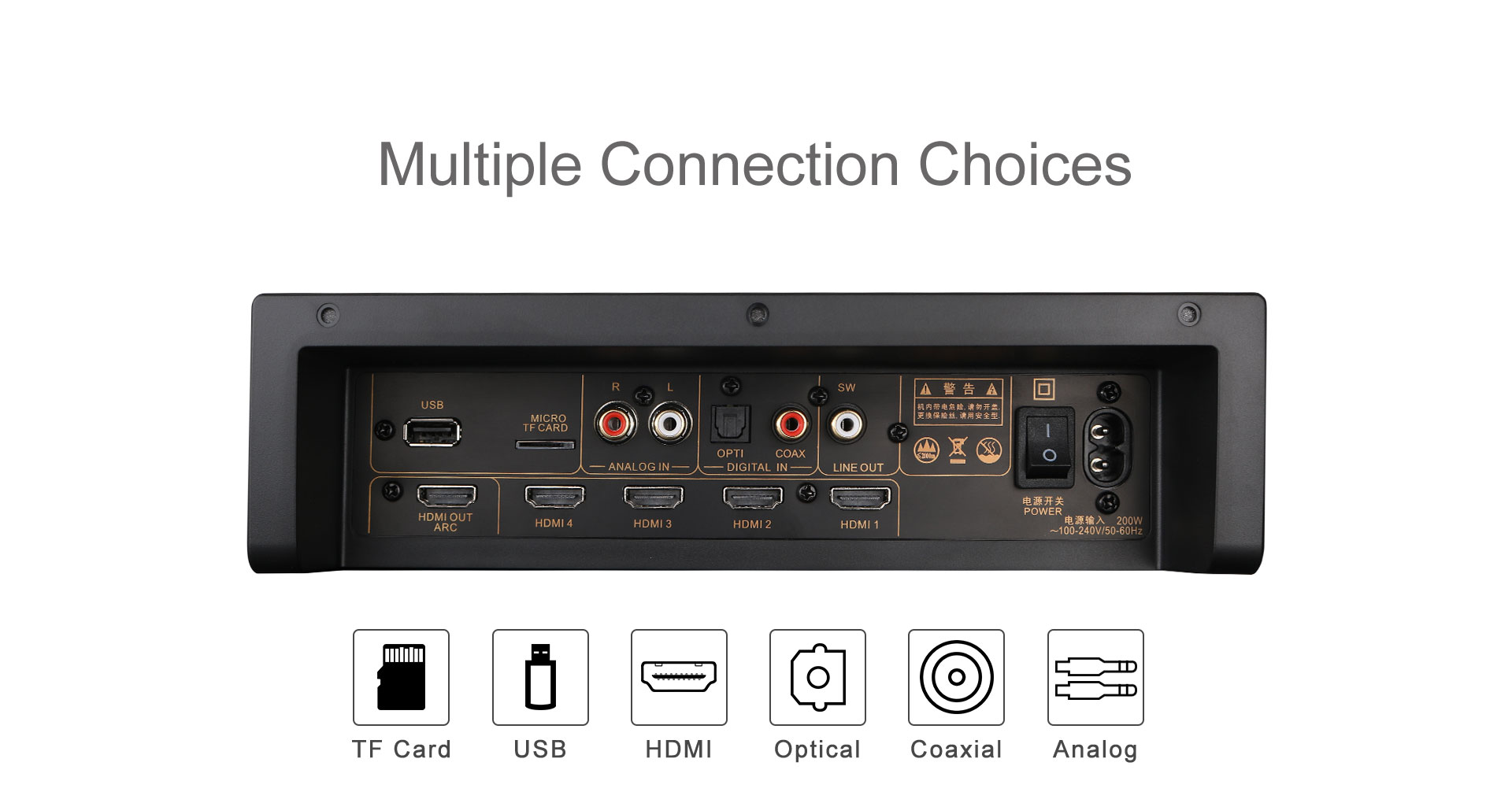 *Многофункциональность: HDMI, оптический, коаксиальный, беспроводной.